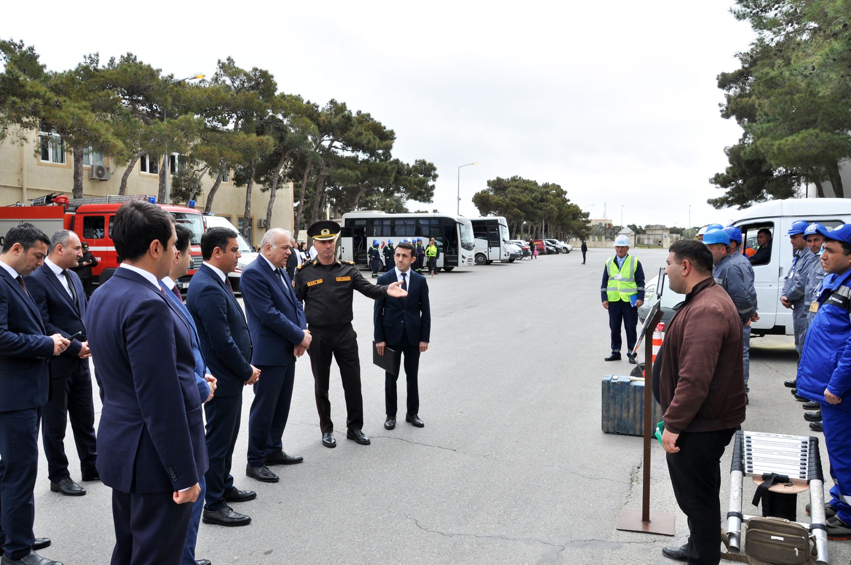 Məşq zamanı Pirallahı Rayon İcra Hakimiyyəti başçısının birinci müavini - Fövqəladə Hallar Komissiyasının sədri Vəzir Səfixanov, Xəzər və Pirallahı rayonları üzrə fövqəladə hallar və mülki müdafiə şöbəsinin rəisi Vüsal Fətullayev, həmçinin digər məsul şəxslər tərəfindən qüvvələrə baxış keçirilib.