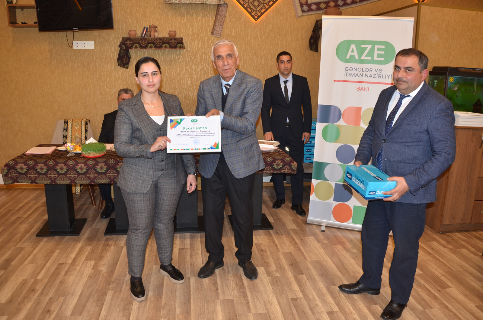 Tədbir çərçivəsində rayonun idman həyatında fəal iştirak edən bir qrup məşqçi və idmançı mükafatlandırılıb. Sonda xatirə şəkli çəkdirilib.