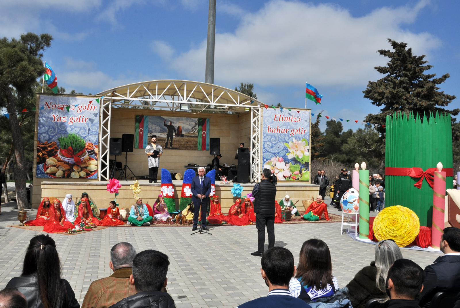 Daha sonra tədbir bayram tonqalının alışdırılması ilə açıq elan olunub. RİH başçısı rayon sakinlərini milli bayram münasibətilə təbrik edib, regionda mürəkkəb proseslərin getdiyi bir dövrdə ölkəmizdə hökm sürən sabitlik və əmin-amanlığın xüsusi əhəmiyyət daşıdığını vurğulayıb. Bildirilib ki, Novruz Azərbaycan xalqının zəngin dünyagörüşünü əks etdirir və milli-mənəvi sərvətlərimiz içərisində mühüm yer tutur. Həmçinin vurğulanıb ki, ənənələrin əsrlər boyu qorunub saxlanılıb yaşadılması xalqımızın köklərinə bağlılığını göstərir. Qeyd olunub ki, bayramın dövlət səviyyəsində geniş qeyd olunması Ümummilli Lider Heydər Əliyevin adı ilə bağlı olub, onun rəhbərliyi dövründə milli-mənəvi irsin dirçəldilməsi istiqamətində mühüm addımlar atılıb. Eyni zamanda qeyd olunub ki, Müzəffər Ali Baş Komandan İlham Əliyevin rəhbərliyi ilə ölkəmizdə əldə olunan möhtəşəm Zəfərdən sonra Qarabağ və Şərqi Zəngəzurda aparılan genişmiqyaslı quruculuq işləri, eləcə də Birinci vitse-prezident Mehriban xanım Əliyevanın milli-mənəvi dəyərlərimizin qorunması və təbliği istiqamətində gördüyü işlər Novruz ənənələrinin daha böyük ruh yüksəkliyi ilə yaşadılmasına mühüm töhfə verir. Bu siyasətin nəticəsi olaraq bu gün işğaldan azad olunmuş torpaqlarda da bayram tonqalları alovlanır, xalqımızın qürur və sevinc hissi daha da güclənir.