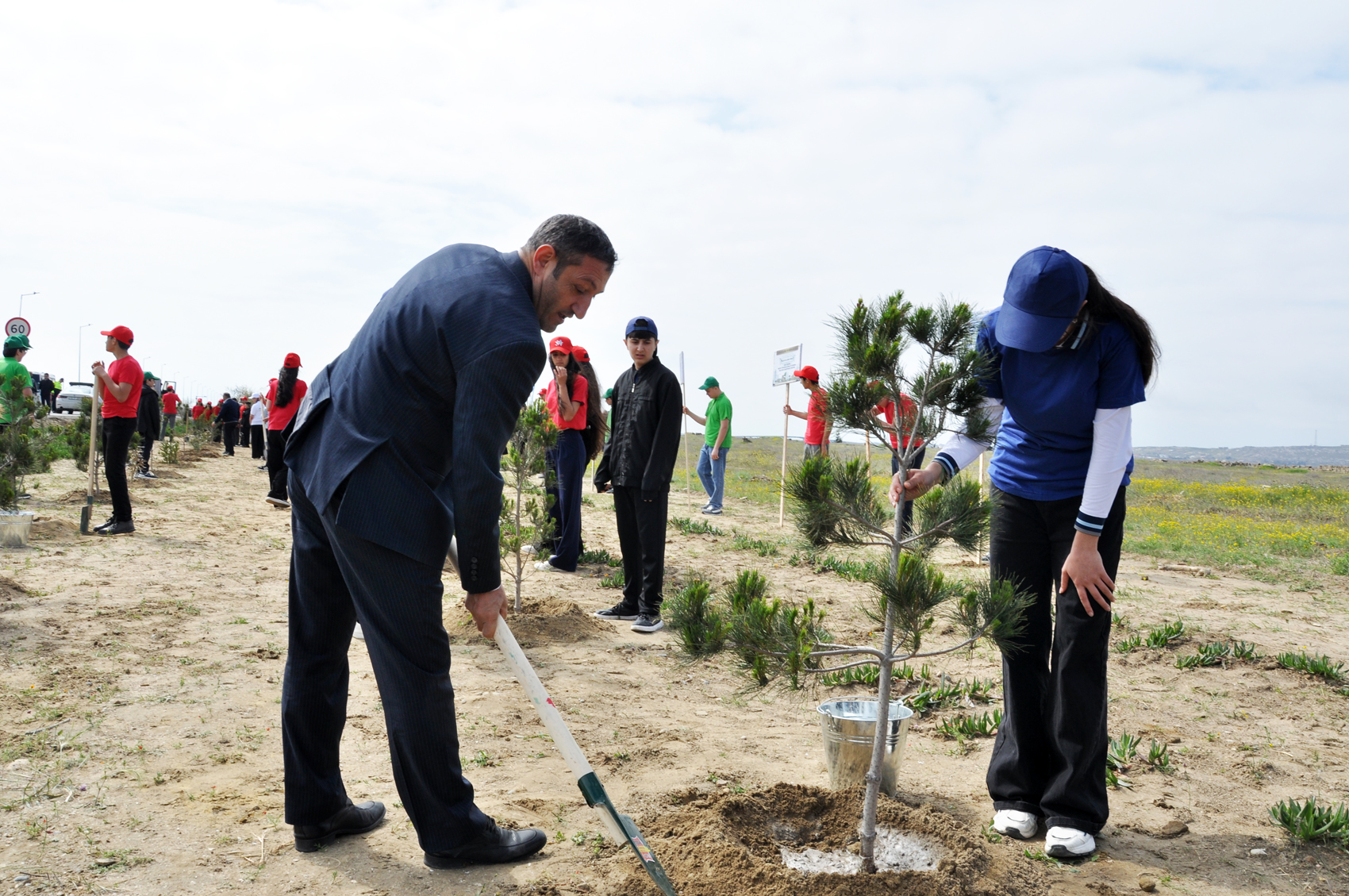Tədbirdən əvvəl rayon ərazisinin girişində, Pirallahı Rayon İcra Hakimiyyəti ilə Yeni Azərbaycan Partiyası Pirallahı rayon təşkilatının birgə təşkilatçılığı ilə Pirallahı Sənaye Parkının yaxınlığında genişmiqyaslı ağacəkmə aksiyası təşkil olunub. Aksiyada rayon rəhbərliyi, müxtəlif idarə, müəssisə və təşkilatların kollektivləri ilə yanaşı, məktəblilər də fəal iştirak ediblər. Hər bir məktəb öz şüarı ilə ayrılmış əraziyə daxil olaraq ağaclar əkib, onlara aqrotexniki qulluq göstərib. Daha sonra şagirdlər hazırladıqları şüarları böyük ruh yüksəkliyi ilə əraziyə yerləşdiriblər. Rayon İcra Hakimiyyətinin başçısı şagirdlərlə görüşərək onların təşəbbüslərini yüksək qiymətləndirib və bu kimi fəaliyyətlərin davamlı olmasının vacibliyini vurğulayıb. Qeyd edək ki, aksiya çərçivəsində eldar şamı, zeytun və sərv ağacları olmaqla ümumilikdə 300 ədəddən çox ağac əkilib.