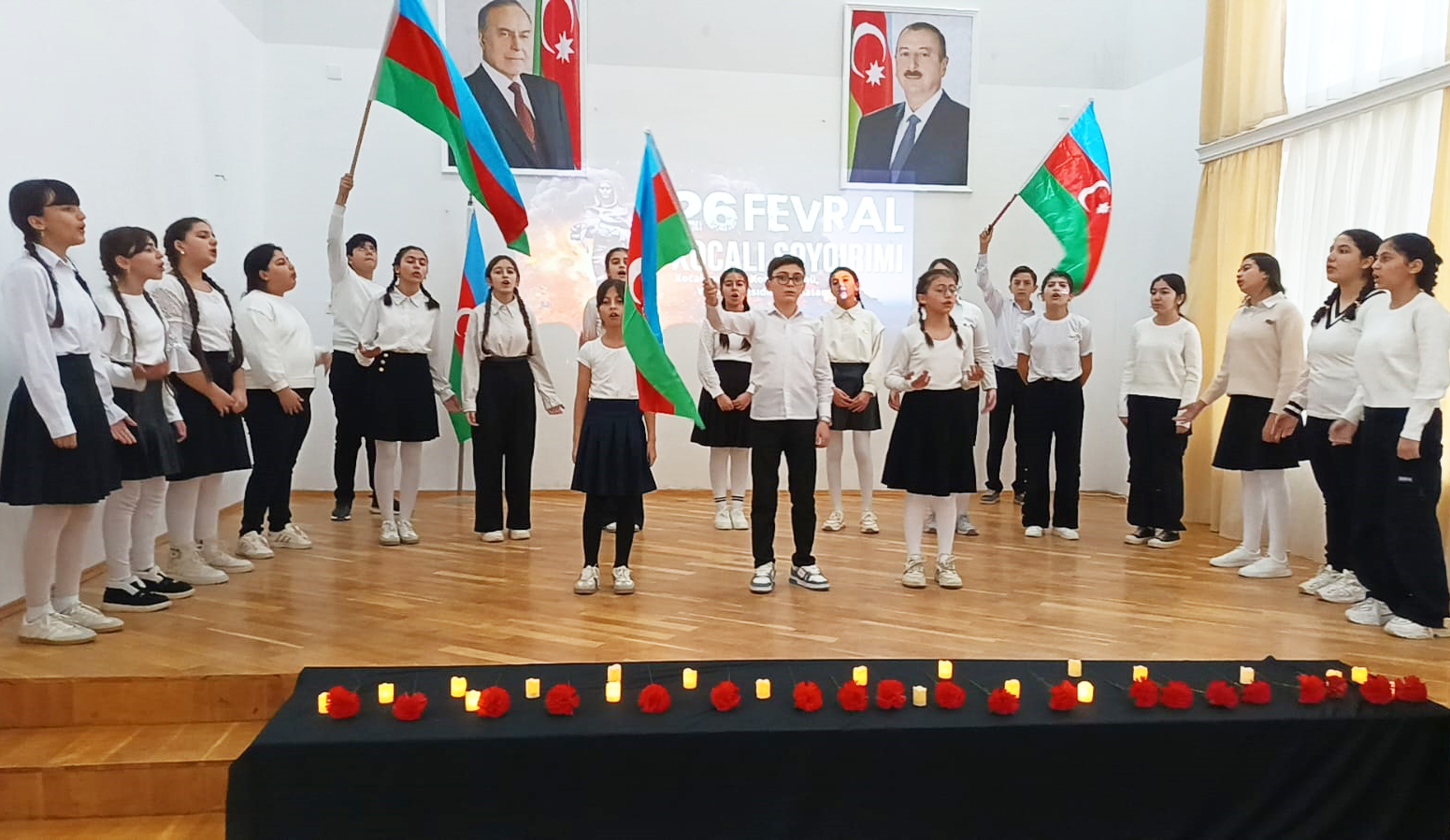 Tədbirlər Azərbaycan Respublikasının Dövlət Himninin səsləndirilməsi ilə başlayıb. Ardınca Ulu Öndər Heydər Əliyevin, Xocalı soyqırımı qurbanlarının, eləcə də torpaqlarımızın azadlığı uğrunda canlarından keçmiş şəhidlərin xatirəsi bir dəqiqəlik sükutla yad edilib.